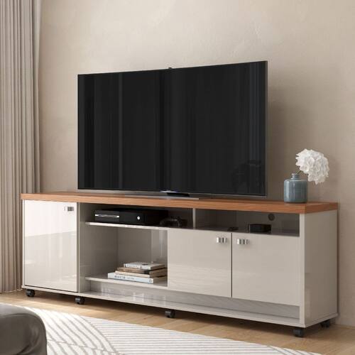 Rack para TV até 75 polegadas Dallas com 3 Portas e Rodízios Off White/Jequitibá - Lukaliam