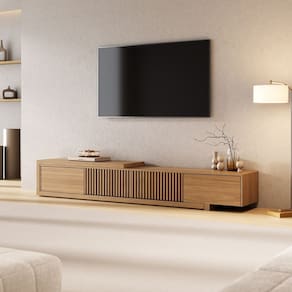 O Rack Aruá traz a essência do estilo japandi, inspirado na simplicidade oriental e no equilíbrio entre forma e função. Com design baixo, portas lisas e ripadas, acabamento em Jatobá e ferragens premium, une sofisticação e praticidade. Disponível em 180 e 220 cm, pode ser suspenso, apoiado no piso ou configurado com aparador extensível. Produto Montado: Sim Acabamento: Finish Foil Acabamento da Porta: Finish Foil Acabamento dos Pés: Finish Foil Altura dos Pés: 5,5 cm Altura Máxima dos Pés: 5.5000 Ambiente Principal: Sala de Estar codigo_ean: 7900288237538 Complexidade da Montagem: Média: pode ser montado por mais de uma pessoa e/ou necessite de maior conhecimento para montagem Cor: Jatobá Cor do Produto: Jatobá Escala de Brilho: Semi-Fosco Escala de Brilho da Porta: Semi-Fosco Espessura do Tampo: 40 mm Estilo do Pé: Moderno Ideal para TVs até (Polegadas): 75 Itens Inclusos: 1 Rack, Manual de Montagem e Kit Ferragens Linha ou Coleção: Aruá Manual de Montagem e Instalação: https://product-hub-prd.madeiramadeira.com.br/484221172/documents/60ecb888-27a0-4e1d-93bc-a04eeaf754d43232074600517587233804621.pdf Marca: CabeCasa MadeiraMadeira Material da Porta: MDP Material do Puxador da Porta: MDP Material dos Pés: MDP Material Principal: MDP Modelo de Porta: Porta Ripada Montagem Flex: Sim, o aparador pode ser montado para o lado esquerdo e direito. Necessita Montagem: Sim Origem do Produto: Nacional Peso: 51,15 kg Possui Espelho: Não Possui iluminação: Não Possui Passa Cabos: Não Possui Pés: 02 Possui Portas: Sim Possui Prateleiras: Não Possui Vidro: Não Recomendações de Uso, Manutenção e Limpeza: A limpeza deve ser feita com pano macio, levemente umedecido com água e sabão neutro. Em seguida, passe um pano seco para evitar o acúmulo de umidade. Nunca utilize produtos abrasivos, esponjas de aço, alvejantes, álcool em excesso ou solventes, pois esses produtos podem agredir o acabamento e comprometer sua aparência. Sapatas Niveladoras: Não Sistema de Montagem: Parafusos, cavilhas e minifix Tipo de Dobradiça/Corrediça da Porta: Metálica Tipo de Porta: Basculante Tipo de Puxador da Porta: Embutido