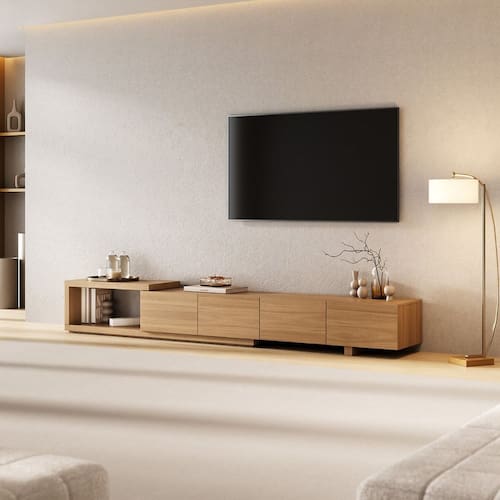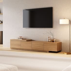 O Rack Aruá traz a essência do estilo japandi, inspirado na simplicidade oriental e no equilíbrio entre forma e função. Com design baixo, portas lisas e ripadas, acabamento em Jatobá e ferragens premium, une sofisticação e praticidade. Disponível em 180 e 220 cm, pode ser suspenso, apoiado no piso ou configurado com aparador extensível. Produto Montado: Sim Acabamento: Finish Foil Acabamento da Porta: Finish Foil Acabamento dos Pés: Finish Foil Altura dos Pés: 5,5 cm Altura Máxima dos Pés: 5.5000 Ambiente Principal: Sala de Estar codigo_ean: 7900288237521 Complexidade da Montagem: Média: pode ser montado por mais de uma pessoa e/ou necessite de maior conhecimento para montagem Cor: Jatobá Cor do Produto: Jatobá Escala de Brilho: Semi-Fosco Escala de Brilho da Porta: Semi-Fosco Espessura do Tampo: 40 mm Estilo do Pé: Moderno Ideal para TVs até (Polegadas): 75 Itens Inclusos: 1 Rack, Manual de Montagem e Kit Ferragens Linha ou Coleção: Aruá Manual de Montagem e Instalação: https://product-hub-prd.madeiramadeira.com.br/153658266/documents/cb01e5b8-ed42-49fd-8322-88f19b8e4e3e3231995600517587230940248.pdf Marca: CabeCasa MadeiraMadeira Material da Porta: MDP Material do Puxador da Porta: MDP Material dos Pés: MDP Material Principal: MDP Modelo de Porta: Porta Lisa Montagem Flex: Sim, o aparador pode ser montado para o lado esquerdo e direito. Necessita Montagem: Sim Origem do Produto: Nacional Peso: 44,45 kg Possui Espelho: Não Possui iluminação: Não Possui Passa Cabos: Não Possui Pés: 02 Possui Portas: Sim Possui Prateleiras: Não Possui Vidro: Não Recomendações de Uso, Manutenção e Limpeza: A limpeza deve ser feita com pano macio, levemente umedecido com água e sabão neutro. Em seguida, passe um pano seco para evitar o acúmulo de umidade. Nunca utilize produtos abrasivos, esponjas de aço, alvejantes, álcool em excesso ou solventes, pois esses produtos podem agredir o acabamento e comprometer sua aparência. Sapatas Niveladoras: Não Sistema de Montagem: Parafusos, cavilhas e minifix Tipo de Dobradiça/Corrediça da Porta: Metálica Tipo de Porta: Basculante Tipo de Puxador da Porta: Embutido