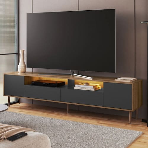 Rack para TV Até 75 Polegadas Rotterdam 2 Portas 2 Gavetas com Led Grafite - Art In Móveis - Rack para TV até 75 Polegadas com LED