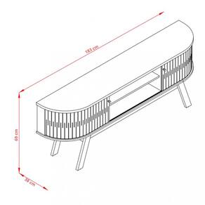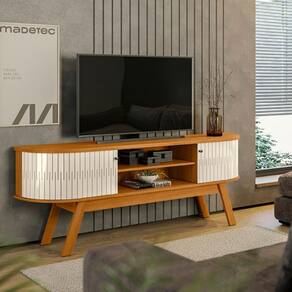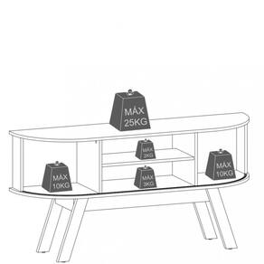 Características: 1 Prateleira 2 Portas flexíveis 4 Pés palito Estrutura em MDP Painéis em MDP de 12,15 e 25 mm Peso total suportado 30 kg Puxadores em poliestireno cromado Revestimento com pintura DIP Sistema de fixação Girofix Suporte para TV de até 75 polegadas Tampo e base com detalhes curvos