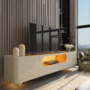 O Rack Nobre possui formas curvas e orgânicas que destacam seu design moderno e elegante. Com luz led em cor quente traz um tom de aconchego e conforto ao ambiente, completando a decoração. Possui três opções de pés, sendo possível escolher entre belíssimos pés de vidro com led, pés elegantes em ferro na cor dourada ou pés modernos em madeira maciça. O Rack Nobre foi feito para dar uma vida nova a sua casa e trazer o conforto e beleza que você merece ter. Acabamento: Pintura UV Acabamento da Gaveta: Pintura UV Acabamento da Porta: Pintura UV Acompanha Lâmpada: Não Altura dos Pés: 20 cm Ambiente Principal: Sala de Estar codigo_ean: 7909903356852 Complexidade da Montagem: Média: pode ser montado por mais de uma pessoa e/ou necessite de maior conhecimento para montagem Cor: Off White/Marromle Cor do Produto: Off White/Marromle Cor Flex: Não Cor Interna: Off White Escala de Brilho: Brilhante Escala de Brilho da Gaveta: Brilhante Escala de Brilho da Porta: Brilhante Espessura do Vidro: 8 mm Gaveta com Chave: Não Ideal para TVs até (Polegadas): 84 Informações Complementares: Iluminação por fita LED. Itens Inclusos: 1 Rack, Kit Ferragens e Manual de Montagem Linha ou Coleção: Nobre Manual de Montagem e Instalação: https://product-hub-prd.madeiramadeira.com.br/859633/documents/4ebd1bf2-cc83-4844-923e-889a9895efbbkkpesvidromanualdemontagem.pdf Material da Gaveta: MDF Material da Porta: MDF Material Principal: MDF Montagem Flex: Não Necessita Montagem: Sim Origem do Produto: Nacional Peso: 49 kg Peso Máximo por Gaveta: 5 kg Possui Adega: Não Possui iluminação: Sim Possui Pés: 02 Possui Portas: Sim Possui Prateleiras: Não Possui Vidro: Sim Quantidade de Gavetas: 01 Gaveta Recomendações de Uso, Manutenção e Limpeza: A limpeza do produto deve ser feita por meio do uso de um pano, umedecido com água, e um pano seco. É importante para fazer a limpeza do móvel nunca utilizar produtos químicos ou abrasivos. Para conservar o padrão de qualidade dos produtos Gelius, nunca arraste um móvel se este estiver cheio. Nunca puxe o móvel de frente para você, pois ele pode balançar e provocar acidentes. Sapatas Niveladoras: Não Sistema de Montagem: Parafusos, Cavilhas Tipo de Corrediça: Metálica Telescópica Tipo de Corrediça da Gaveta: Metálica Telescópica Tipo de Dobradiça/Corrediça da Porta: Metálica Tipo de Madeira Maciça dos Pés: Pinus Tipo de Porta: Bater Tipo de Puxador: Embutido Tipo de Puxador da Gaveta: Embutido Tipo de Puxador da Porta: Embutido Tipo de Rack: Rack com Gaveta