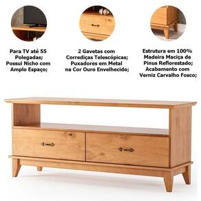 Características do Rack Rústico 100% Madeira para Tv de até 55 Polegadas: