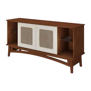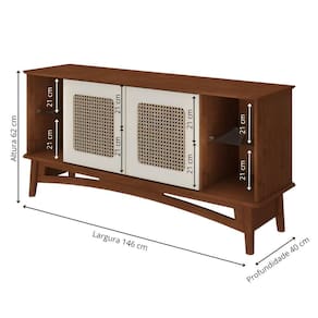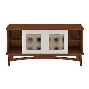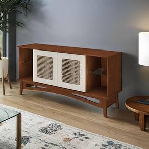 - 01 Rack para TV Veneza de Madeira com 2 Portas em Rattan e 2 Prateleiras de Vidro 6007