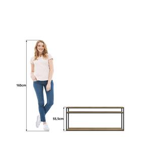 Seu design com linhas retas e estilo industrial permite acomodar televisores, aparelhos eletrônicos, objetos decorativos e itens do dia a dia de forma prática e organizada.