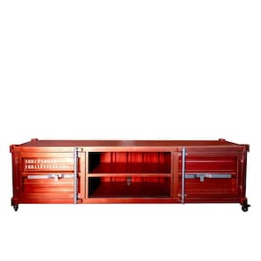 Rack Para Tv Container Newark - Estilo Industrial Em Ferro Cor Vermelho Largura 190cm L