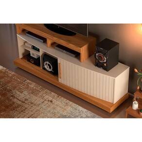 Rack para TV Scala até 47 Polegadas c/ 1 Porta de Correr e 5 Nichos Carvalho Nobre/Off White - DJ Móveis