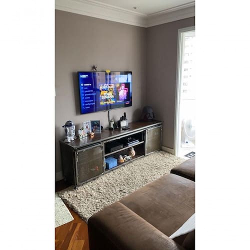 É ideal para apoiar sua TV e equipamentos de audio e video, o espaço para armazenagem nas portas vai ajudar a manter a casa toda em ordem.