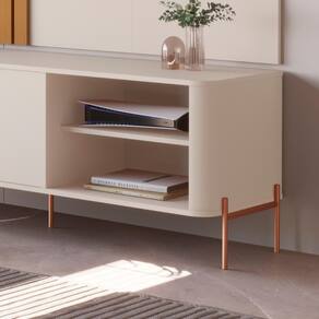 Pés e puxador em metal com design exclusivo;