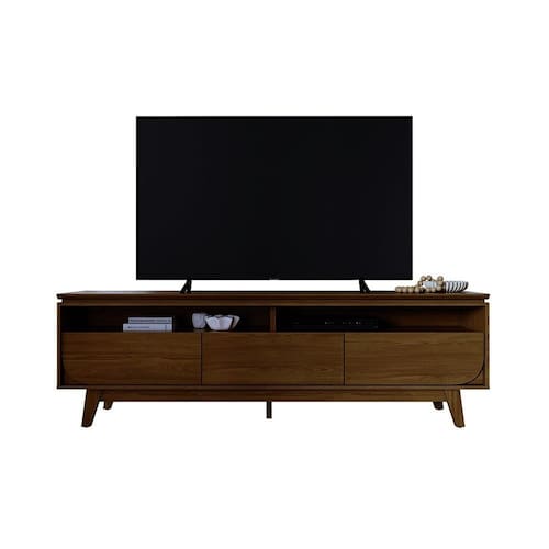 em MDP de 1,5 e 2,5cm. Suporta TV de até 75 Produto Montado: Sim Acabamento: Pintura UV Acabamento da Gaveta: Pintura UV Ambiente Principal: Sala de Estar codigo_ean: 7900288061157 Complexidade da Montagem: Média: pode ser montado por mais de uma pessoa e/ou necessite de maior conhecimento para montagem Cor: Cumaru Cor do Produto: Cumaru Escala de Brilho: Semi-Brilho Gaveta com Chave: Não Ideal para TVs até (Polegadas): 75 Itens Inclusos: 1 Rack Manual de Montagem e Instalação: https://product-hub-prd.madeiramadeira.com.br/975620/documents/2c2bbb92-1468-405b-8254-0392e41c430926485148261737747673967.pdf Marca: Madetec Material da Gaveta: MDP Material dos Pés: MDP Material Principal: MDP Necessita Montagem: Sim Peso: 53,4 kg Peso Máximo por Gaveta: 7 kg Possui Espelho: Não Possui iluminação: Não Possui Pés: 04 Possui Portas: Não Possui Prateleiras: Não Recomendações de Uso, Manutenção e Limpeza: "Para a limpeza utilizar um pano limpo e seco. Não limpar com produtos abrasivos ou escovas; Não deixar exposta à luz do sol diretamente pois isso irá diminuir a vida útil do produto; Este produto Não é recomendado Para ambientes externos onde possa receber chuva." Sapatas Niveladoras: Não Sistema de Montagem: Girofix Tipo de Corrediça da Gaveta: Metálica Telescópica Tipo de Puxador da Gaveta: Embutido