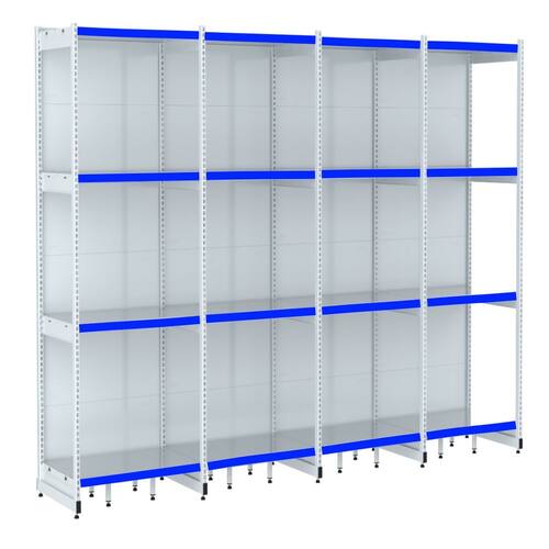 KIT GÔNDOLA RACK PAREDE OU LATERAL 202 FIT 1 INICIAL 3 CONTINUAÇÃO AMAPÁ 90X60 COR BRANCO PORTA ETIQUETA AZUL