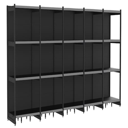 KIT GÔNDOLA RACK PAREDE OU LATERAL 202 FIT 1 INICIAL 4 CONTINUAÇÃO AMAPÁ 90X60 COR PRETO PORTA ETIQUETA CINZA