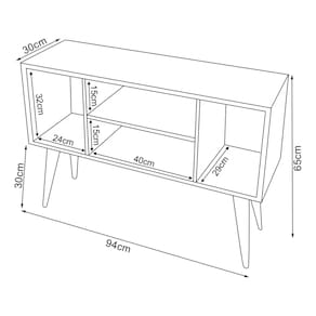 - Altura: 65 cm - Largura: 94 cm - Profundidade: 30 cm - Suporta até 10 kg