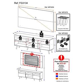 Produzido em MDP com pintura UV, que garante maior durabilidade e facilidade na limpeza, possui espaço para os equipamentos eletrônicos e nichos para objetos decorativos, além de duas portas articuladas com um amplo espaço interno para manter seus pertences organizados. O painel para TV de até 65 possui espaçamento para passagem dos fios, que permite deixar os cabos mais organizados. Devido as variações de tamanho dos televisores no mercado, sugerimos que verifique as medidas da sua TV e compare com o painel antes de efetuar a compra.