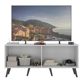 Dimensões do produto montado: Altura: 56 cm | Largura: 123,5 cm | Profundidade: 31,5 cm *Você pode consultar as medidas detalhadas na imagem técnica do produto. *Devido às variações de tamanho dos televisores no mercado, sugerimos que compare o tamanho da sua TV com o rack antes de efetuar a compra.