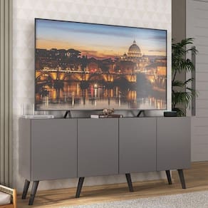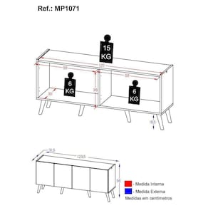 Dimensões do produto montado: Altura: 56 cm | Largura: 123,5 cm | Profundidade: 31,5 cm *Você pode consultar as medidas detalhadas na imagem técnica do produto. *Devido às variações de tamanho dos televisores no mercado, sugerimos que compare o tamanho da sua TV com o rack antes de efetuar a compra.