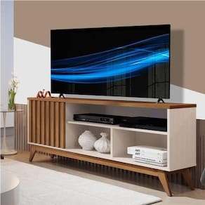 Rack Retrô TV Até 60 Polegadas Pés De Madeira 1 Porta E Nichos Malbec Wood Ripado 1.36