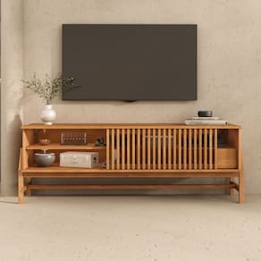 Feito de madeira. Feito para durar. O Rack Adamo combina o melhor do design contemporâneo com a autenticidade da madeira natural. Feito inteiramente em madeira maciça, ele revela veios e nuances únicas que tornam cada peça exclusiva — um verdadeiro destaque na decoração da sala. Seu desenho minimalista é marcado pelas portas ripadas deslizantes com sistema decorrer, que dispensam puxadores e reforçam a estética limpa e elegante. O tampo amplo comporta TVs de até 75”, enquanto os nichos internos oferecem espaço funcional para eletrônicos, livros e objetos decorativos, mantendo tudo bem organizado. As gavetas com corrediças telescópicas e sistema de fecho-toque proporcionam abertura suave e total, ideais para armazenar acessórios e controles. A estrutura elevada, sustentada por pés e travessas laterais, garante leveza visual e robustez à peça, além de facilitar a limpeza do ambiente.