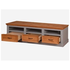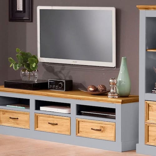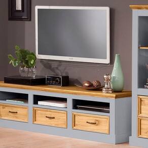 A Coleção England Valoriza A Beleza Da Madeira. O Rack De Tv Possui 3 Nichos E 3 Gavetas E É Construído Em Madeira Maciça 100% Proveniente De Reflorestamento, Tem Acabamento Em Cera O Que Enaltece A Naturalidade E Beleza Da Madeira Deixando O Móvel Em Estilo Rústico Para Sua Sala. Acabamento: Acetinado Acabamento da Gaveta: Acetinado Ambiente Principal: Sala de Estar Complexidade da Montagem: Média: pode ser montado por mais de uma pessoa e/ou necessite de maior conhecimento para montagem Cor: Cinza/Natural Cor do Produto: Cinza/natural Escala de Brilho: Semi-Fosco Escala de Brilho da Gaveta: Semi-Fosco Gaveta com Chave: Não Ideal para TVs até (Polegadas): 60 Informações Complementares: Suporta até 50 kg de forma distribuída sob o tampo. Itens Inclusos: 1 rack com manual e ferragens Linha ou Coleção: England Manual de Montagem e Instalação: https://product-hub-prd.madeiramadeira.com.br/929651/documents/28d55e71-9159-4fac-9649-a95629fa90bb220263958991722962866881.pdf Material da Gaveta: Madeira Maciça Material do Puxador da Gaveta: Metal Material dos Pés: Madeira Maciça Material Principal: Madeira Maciça Necessita Montagem: Sim Origem do Produto: Nacional Peso: 33 kg Peso Máximo por Gaveta: 7 kg Possui Espelho: Não Possui Possui iluminação: Não Possui Pés: Rodapé Possui Portas: Não Possui Prateleiras: Não Quantidade de Gavetas: 03 Gavetas Recomendações de Uso, Manutenção e Limpeza: Limpar com pano úmido. Sapatas Niveladoras: Não Sistema de Montagem: Parafusos, Cavilhas e Minifix Tipo de Corrediça da Gaveta: Metálica Simples Tipo de Madeira Maciça: Pinus Tipo de Madeira Maciça da Gaveta: Pinus Tipo de Madeira Maciça dos Pés: Pinus Tipo de Puxador da Gaveta: Externo Marca: IdeaHome