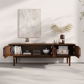 Autêntico, compacto e feito para espaços menores. Com 145 cm de largura, o Rack Pequeno Madeira Maciça Minimalista Tecca é a escolha ideal para quem busca um móvel funcional com presença leve. Feito 100% em madeira maciça, combina estrutura firme com design limpo, valorizando ambientes pequenos com estética atemporal e proporção inteligente.