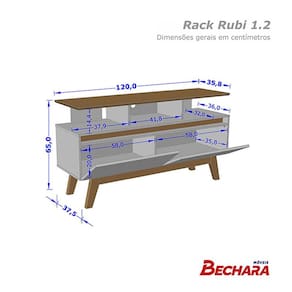 Marca: Móveis BecharaLinha: SalaModelo: Rubi 1.2Material da estrutura: MDF de 15mm, MDP 15mm e 12mm e pés de madeira maciçaAcabamento: Pintura UVAltura: 65 cmLargura: 120 cmProfundidade: 37,5cmRequer montagem: Sim (kit montagem incluso)Altura da embalagem: 9,5 cmLargura da embalagem: 39,5 cmComprimento da embalagem: 125,5 cmPeso: 22,6 KgTamanho máximo de TV: 50 polegadas Quantidade de portas: 02, basculanteMaterial de dobradiças: MetálicasQuantidade de gavetas: Não se aplicaCom corrediças: Não se aplicaMaterial das corrediças: Não se aplica Com puxador: SimMaterial do puxador: EmbutidoQuantidade prateleiras: 01Com rodízios: Não se aplicaCondição do item: NovoÉ kit: NãoEmbalagem do envio: Papelão e plásticoInformações adicionais:- Os objetos que ambientam as fotos não acompanham o produto;- O produto será entregue desmontado;- É de inteira responsabilidade do cliente a montagem do produto e/ou instalação, custos de transporte por escadas e/ou elevadores, guincho ou içamento, assim como possíveis irregularidades provenientes de manuseio inadequado;- Embora o produto acompanhe o manual de montagem, verifique a complexidade antes de decidir montá-lo sozinho, recomendamos que contrate um profissional de sua confiança;- Fique atento, nossas cores podem sofrer alterações dependendo do seu monitor;- ANTES DE MONTAR O SEU PRODUTO, certifique-se que todas as instruções dispostas no manual, bem como todas as ferragens descritas, estejam presentes dentro da embalagem. Verifique se há alguma peça danificada, caso esteja, prestaremos a devida assistência dentro do prazo da garantia.