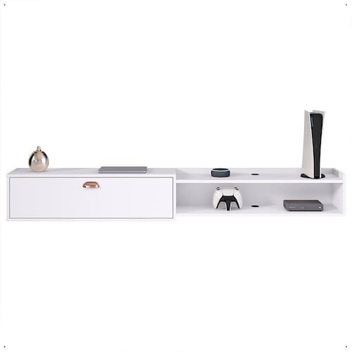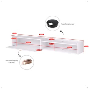 Rack Suspenso 1.8 Estante Home Supremo King Tv Smart 55 60 65 70 Pol. 1 Porta Nicho Puxador Concha Sala Quarto - Branco - Lojas RPM