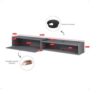 Rack Suspenso 1.8 Estante Home Supremo King Tv Smart 55 60 65 70 Pol. 1 Porta Nicho Puxador Concha Sala Quarto - Cinza - Lojas RPM