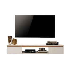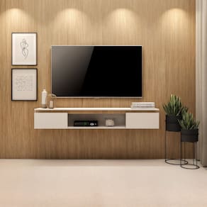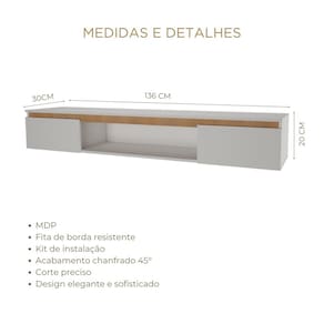 Capacidade: Suporta até 30 kg Produto Montado: Sim Acabamento: BP Acabamento da Porta: BP Ambiente Principal: Sala de Estar codigo_ean: 7900288346834 Complexidade da Montagem: Baixa: pode ser montado por uma pessoa sozinha Cor: branco e amadeirado Cor do Produto: Branco e Amadeirado Escala de Brilho: Fosco Escala de Brilho da Porta: Fosco Espessura do Tampo: 12 mm Ideal para TVs até (Polegadas): 52 Itens Inclusos: Ferragens e Manual de montagem Linha ou Coleção: Rack Suspenso Manual de Montagem e Instalação: https://product-hub-prd.madeiramadeira.com.br/862009613/documents/75cf4196-7b56-4846-afc6-047060f7c4573431294686117726570198445.pdf Marca: BYHOUSE Material da Porta: MDF/MDP Material Principal: MDF/MDP Necessita Montagem: Sim Origem do Produto: Nacional Peso: 12 kg Possui Espelho: Não Possui iluminação: Não Possui Passa Cabos: Sim Possui Pés: Suspenso Possui Prateleiras: Não Possui Vidro: Não Recomendações de Uso, Manutenção e Limpeza: Pano com agua Sistema de Montagem: Acompanha manual Tipo de Dobradiça/Corrediça da Porta: Metálica Tipo de Porta: Abrir Tipo de Puxador da Porta: Externo Marca: Não Informado
