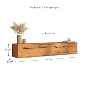 100% Madeira Maciça O Rack Suspenso Tecca 145 cm é a nova leitura do nosso design minimalista para espaços menores, sem abrir mão de elegância, funcionalidade e presença.