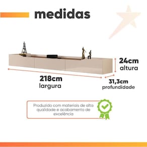 MODELO: Rack Suspenso para Painel ou até 75 Polegadas 2,18m 3 Gavetas Efraín