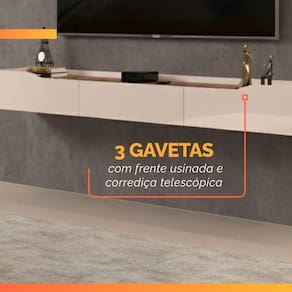 Transforme sua sala de estar com elegância e funcionalidade com esta ampla rack Efraín, suspensa, moderna, perfeita para acomodar sua ou complementar o painel. Produzida com pintura UV de alta qualidade em 8 camadas, o móvel oferece brilho duradouro, proteção contra riscos e facilidade na limpeza, garantindo beleza e resistência por muito mais tempo. Com 3 gavetas espaçosas, você tem amplo espaço para organizar aparelhos eletrônicos, videogames ou objetos de sua preferência, mantendo sempre tudo bem organizado. As corrediças telescópicas proporcionam abertura suave e silenciosa, assegurando praticidade e conforto no uso diário. Seu design moderno e sofisticado combina funcionalidade, sendo a escolha ideal para a sua sala.