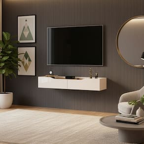 Transforme sua sala de estar com elegância e funcionalidade com esta ampla rack bancada Efraín, suspensa, moderna, perfeita para acomodar sua TV ou complementar o painel. Produzida com pintura UV de alta qualidade em 8 camadas, o móvel oferece brilho duradouro, proteção contra riscos e facilidade na limpeza, garantindo beleza e resistência por muito mais tempo. Com 2 gavetas espaçosas, você tem amplo espaço para organizar aparelhos eletrônicos, videogames ou objetos de sua preferência, mantendo sempre tudo bem organizado. As corrediças telescópicas proporcionam abertura suave e silenciosa, assegurando praticidade e conforto no uso diário. Seu design moderno e sofisticado combina funcionalidade, sendo a escolha ideal para a sua sala.