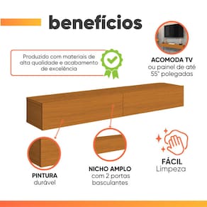 O Rack Suspenso para Painel EDN é ideal para deixar seu ambiente ainda mais bonito, moderno e versátil. Pode ser utilizado em diversos ambientes do seu lar, sozinho ou como complemento do seu painel. Possui duas portas basculantes, e um amplo espaço para objetos de decorações e aparelhos eletrônicos. Seu material de alta qualidade proporciona resistência e durabilidade ao produto.