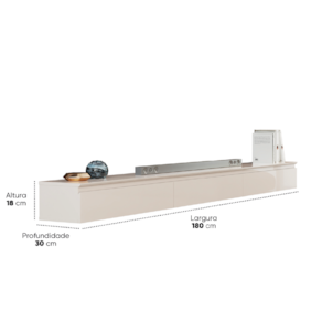 MEDIDAS: A = 18 cm L = 180 cm P = 30 cm PESO: 23,3 kg GAVETAS SUPORTAM ATÉ: 5 kg NICHO SUPORTA ATÉ: 5 kg MODELO: Rack Suspenso para Painel ou TV até 75 Polegadas 3 Gavetas 1,80m Aspen MARCA: EDN COR: Off White MATERIAL: MDP e MDF ESPESSURA DO MATERIAL DA ESTRUTURA: 12, 15 e 18mm TIPODE PINTURA: UV GAVETAS: 3 CORREDIÇAS: Telescópicas ACABAMENTO: Bordas laqueadas TAMPO: MDF PUXADOR: Em cava GARANTIA: 3 Meses DIFERENCIAL: Design Clean com bordas laqueadas e corrediças telescópicas RECOMENDAÇÃO DE LIMPEZA: Para maior durabilidade, recomendável que a limpeza dos móveis seja feita com pano limpo e levemente umedecido em água e sabão neutro. Em seguida, deverá ser passado um pano limpo e seco. SISTEMA DE MONTAGEM: Parafusos / Minifix ITENS INCLUSO: 1 Nicho, 1 Kit Parafusos, 1 Manual de montagem