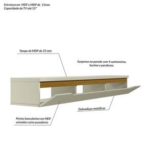 que tal o rack suspenso uno?a hor forma de deixar a sua sala de estar bem equa e pronta para a rotina é apostando no rack uno! dono de uma estrutura versátil que ajuda na organização de eletrônicos ou enfeites, ele apoia tvs de até 55 polegadas, deixando o aparelho em uma altura ideal para curtir um filminho ou a sua série preferida. por ser fixo à parede, ele é ideal para ambientes que não têm tanto espaço disponível, mas que não podem deixar a pde de lado - o design tradicional ganha o reforço da cor harmônica e charmosa, que cai bem com a décor de um lar aconchegante. Marca: Modern