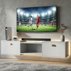INFORMAÇÕES DO PRODUTO: * Altura: 30 centímetros; * Largura: 120 centímetros; * Profundidade: 30 centímetros; * Peso suportado: até 15 kg distribuídos; * Produzido em MDP 15mm; * 2 Portas com dobradiças metálicas; * Puxador Concha Lauren Poliestireno Metalizado; * Nicho decorativo; * Tampo espaçoso com passa-fio; * Ripado em pintura impressa HD; * Ideal para Tv´s de até 42 polegadas;