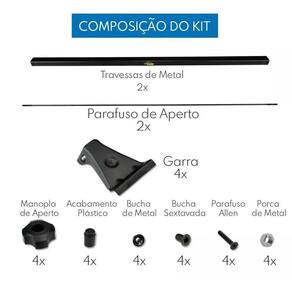 Rack teto bagageiro + 2 cintas peugeot 2 ptas 206/207 A vhip desenvolveu esse rack sob rigoroso controle de qualidade, cujo processo industrial, segue os padrões de segurança, com acompanhamento e supervisão técnica contínua, visando proporcionar ao consumidor, uma excelente alternativa no transporte de bagagens ou cargas. Especificação técnica: Projetado e desenvolvido para suportar até 45 kg de peso máximo, desde que distribuído de forma uniforme e equilibrada; Manual de instruções, para orientar a montagem, sua capacidade de transporte, regras de utilização e outros informes; Não amassa e nem risca o veículo; Cor preto; Fabricado em aço; Não exige furações; Fácil instalação; Ótimo acabamento; Excelente resistência. Ficha técnica: fabricante: vhip; material: ferro tubular / aço; capacidade de carga do rack: 45kg distribuídos cor: preto. Conteúdo da embalagem: 2 racks dianteiro + traseiro ; kit instalação; manual; 2 cintas de amarração com catraca. Atenção:O envio das cintas de amarração ocorre de forma aleatória, conforme disponibilidade de cores em estoque Instalação do produto:Nossos produtos acompanham manual de instalação, se por algum motivo não conseguir instalar, favor entrar em contato conosco atraves do bilhete colado na caixa do produto. Temos uma equipe especializada para te ajudar.