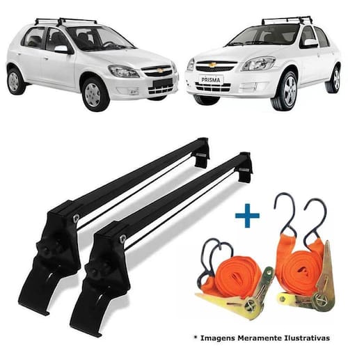 Rack teto bagageiro + 2 cintas prisma antigo ano 06/12 A vhip desenvolveu esse rack sob rigoroso controle de qualidade, cujo processo industrial, segue os padrões de segurança, com acompanhamento e supervisão técnica contínua, visando proporcionar ao consumidor, uma excelente alternativa no transporte de bagagens ou cargas. Especificação técnica: Projetado e desenvolvido para suportar até 45 kg de peso máximo, desde que distribuído de forma uniforme e equilibrada; Manual de instruções, para orientar a montagem, sua capacidade de transporte, regras de utilização e outros informes; Não amassa e nem risca o veículo; Cor preto; Fabricado em aço; Não exige furações; Fácil instalação; Ótimo acabamento; Excelente resistência. Ficha técnica: fabricante: vhip; material: ferro tubular / aço; capacidade de carga do rack: 45kg distribuídos cor: preto. Conteúdo da embalagem: 2 racks dianteiro + traseiro ; kit instalação; manual; 2 cintas de amarração com catraca. Atenção:O envio das cintas de amarração ocorre de forma aleatória, conforme disponibilidade de cores em estoque Instalação do produto:Nossos produtos acompanham manual de instalação, se por algum motivo não conseguir instalar, favor entrar em contato conosco atraves do bilhete colado na caixa do produto. Temos uma equipe especializada para te ajudar.