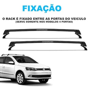 - fabricante: cristalcar - modelo l world - medidas do perfil barras : 9cm largura x 3cm de altura - 4 portas serve somente no gol g5 g6 e voyage g5 g6 - instalação: entre as portas do veiculo foto ilustrativa - tratamento anticorrosivo - pintura em pó epóxi microtexturado - suporta até 35 kg de carga prevalecer a capacidade de carga do teto do veiculo, veja no manual - instalação fácil, entre as portas, sem furos - cor preto - contém 2 peças dianteiro e traseiro