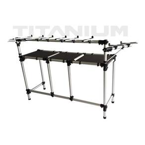 Altura Maxima: 1,20 metros Altura das Bandejas MDF: 90 cm Largura: 1,50 metros Profundidade: 50 cm Material: Tubo alumínio anodizado Cor: Alumínio fosco
