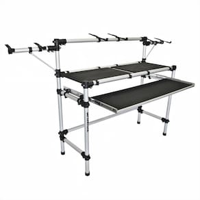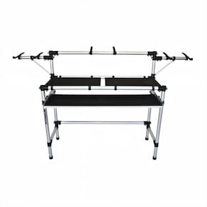 Possui bandejas em MDF revestido em EVA para equipamentoscomomixers, controladores e CDJs. Com acabamento em alumínio, totalmente desmontável e ideal para transporte.Os Suportes são modulares podendo acomodar e adequar o seu equipamento da melhor forma e posição para sua performance de trabalho.