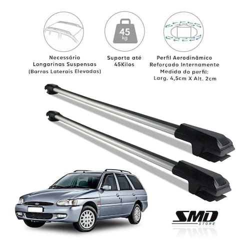 Rack Travessa De Teto Prata Ford Escort Wagon 1997 A 2000 Prata Especifico Par de Travessas De Teto Rack Alumínio Prata - Modelo Travessa de 4,5cm larg x 2cm altura