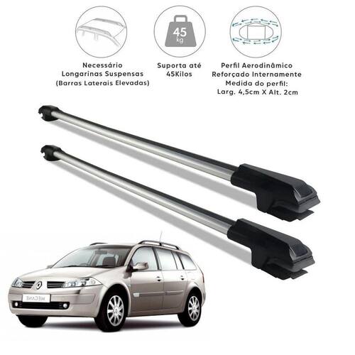 Rack Travessa Teto Renault Megane Grand Tour Wagon 06 A 12 Prata Especifico Par de Travessas De Teto Rack Megane Grand Tour Wagon 2006 á 2012 Alumínio Prata - Modelo Travessa de 4,5cm larg x 2cm altura