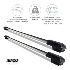 Fabricada em Alumínio Resistente Pintura Eletrostática na Cor Prata Parafusos em Aço Inox Borracha central para apoio de cargas Modelo com 4,5 cm de Largura e 2 cm de Espessura Não é Necessário Fazer Adaptações no Comprimento a peça é feita de acordo com o veículo Capacidade Máxima de 45 kgs Distribuídos