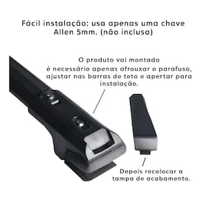 Especificação Técnica: Fabricada em Alumínio Resistente Pintura Eletrostática na Cor Preta Parafusos em Aço Inox Borracha central para apoio de cargas Modelo com 4,5 cm de Largura e 2 cm de Espessura Não é Necessário Fazer Adaptações no Comprimento a peça é feita de acordo com o veículo Capacidade Máxima de 45 kgs Distribuídos