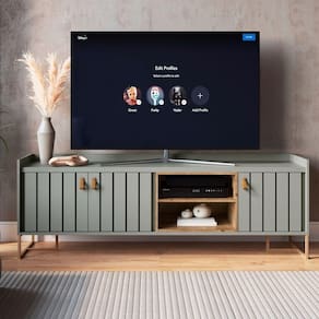 As portas com ripado laminado não são apenas funcionais, mas uma declaração de estilo, transformando o móvel em uma peça central do ambiente. Com furo para passa fio, a gestão de cabos torna-se fácil e discreta, mantendo a aparência limpa e organizada.