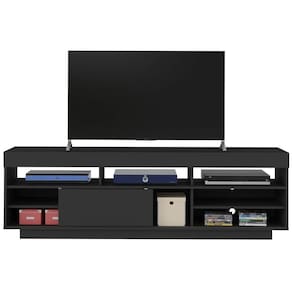 Rack Treviso Para Sala Tv 75" Com 6 Nichos Prateleira e Porta Preto -