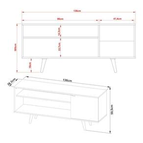 Dimensões do produto montado: Altura: 59,5cm | Largura: 136cm | Profundidade: 36,3cm *Devido as variações de tamanho dos televisores no mercado, sugerimos que verifique as medidas da sua TV e compare com o rack antes de efetuar a compra. *Você pode consultar as medidas detalhadas na imagem técnica do produto.