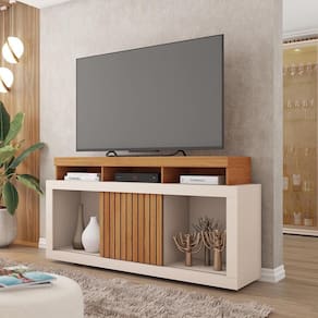 O Rack TV 55 Pol 136cm Bancada Lyara na cor Freijó/Off White, é a escolha ideal para quem busca unir design sofisticado, praticidade e funcionalidade na sala de estar. Fabricado com materiais de alta qualidade, como MDP, MDF e HDF, possui acabamento em pintura UV, garantindo resistência e beleza ao móvel. Com 136 cm de largura, o rack suporta TVs de até 55 polegadas, proporcionando segurança e versatilidade. Seu destaque fica por conta da porta deslizante ripada em baixo relevo, um detalhe que agrega modernidade e diferenciação ao ambiente. O Rack Lyara oferece amplo espaço para organização: são 3 prateleiras e 5 nichos para acomodar aparelhos eletrônicos ou decorações. Conta ainda com passa-fio para facilitar a organização dos cabos e rodízios embutidos, possibilitando mobilidade e praticidade na limpeza ou mudança de posição. Dimensões do Produto: Altura: 74 cm Largura: 136 cm Profundidade: 40 cm Peso: 29 kg Especificações do Produto: Material da Estrutura: MDP 12mm, MDP 15mm, MDF 12mm, HDF 3mm Acabamento: Pintura UV Escala de Brilho: Fosco Suporta TV de até: 55 Polegadas Peso Suportado: 17 Kg Distribuídos Possui Portas: Sim Quantidade de Portas: 1 Porta Tipo de Porta: Deslizante Possui Puxador: Não possui Possui Gavetas: Não possui Possui Prateleiras: Sim Quantidade de Prateleiras: 3 Prateleiras Possui Nichos: Sim Quantidade de Nichos: 5 Nichos Possui Passa Fio: Sim Possui regulagem de altura: Não Possui Pés: Sim Tipo de Pés: Rodízios embutido Diferenciais: Design sofisticado; Porta MDF ripada em baixo relevo com fundo preto. Sistema de montagem: Parafusos/Cavilhas/Minifix Manual de Montagem: Sim Complexidade da Montagem: Média Montagem: Recomendamos que seja feita por um profissional Garantia: 90 dias contra defeito de fabricação Instruções de Limpeza: Utilizar um pano limpo e levemente úmido Quantidade de Volumes: 1 Caixa Medida das Embalagens: Caixa 1: 141,9x47,2x9,2cm Entrega: É feita somente até o térreo ou portaria. Confira sempre as medidas das embalagens para assegurar que o produto passe por portas e escadas do local.