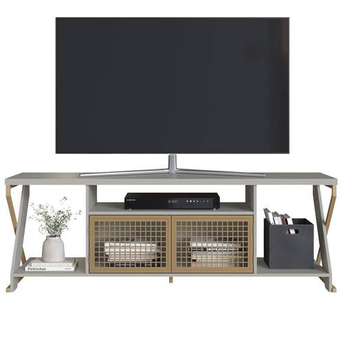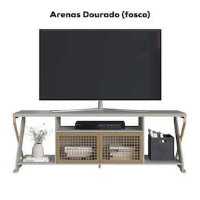 Rack Bancada P1033, estilo industrial e praticidade para sua sala. Estrutura MDP de 15 mm e pés/base em metal (pintura epóxi). Composto por portas em tela de aço e dobradiças metálicas, pés em formato diferenciado e nichos decorativos funcionais, além de ponteiras em plástico para evitar o atrito do móvel com o piso. Suporta com segurança TVs de até 60 polegadas. Produto será entregue em 01 volume.